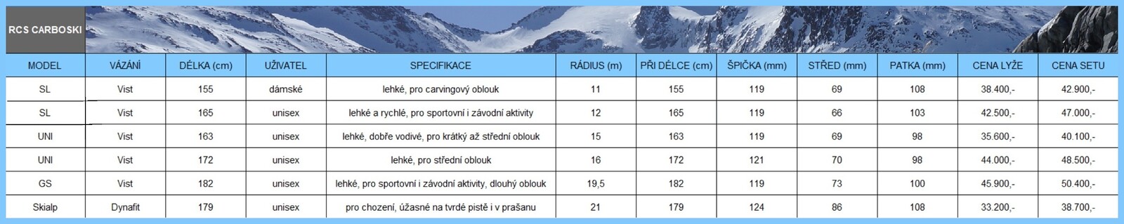 Nové lyže Skyalp a Freeride